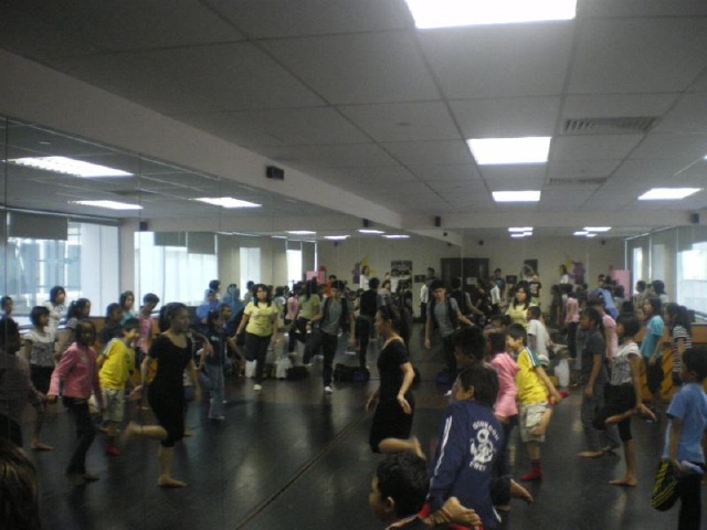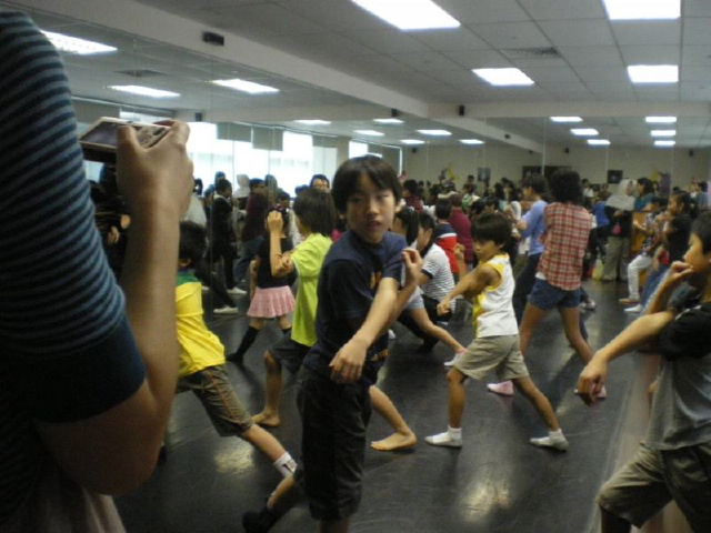 BTBAF企画のダンスのワークショップ。日本の子どもたちとシンガポールの子どもたちが一緒にダンスを体験しました。マレーダンスは、マレーシアの伝統的な舞踊ですが、意外にテンポが速く、独特な動きに子どもたちは悪戦苦闘していました。 |